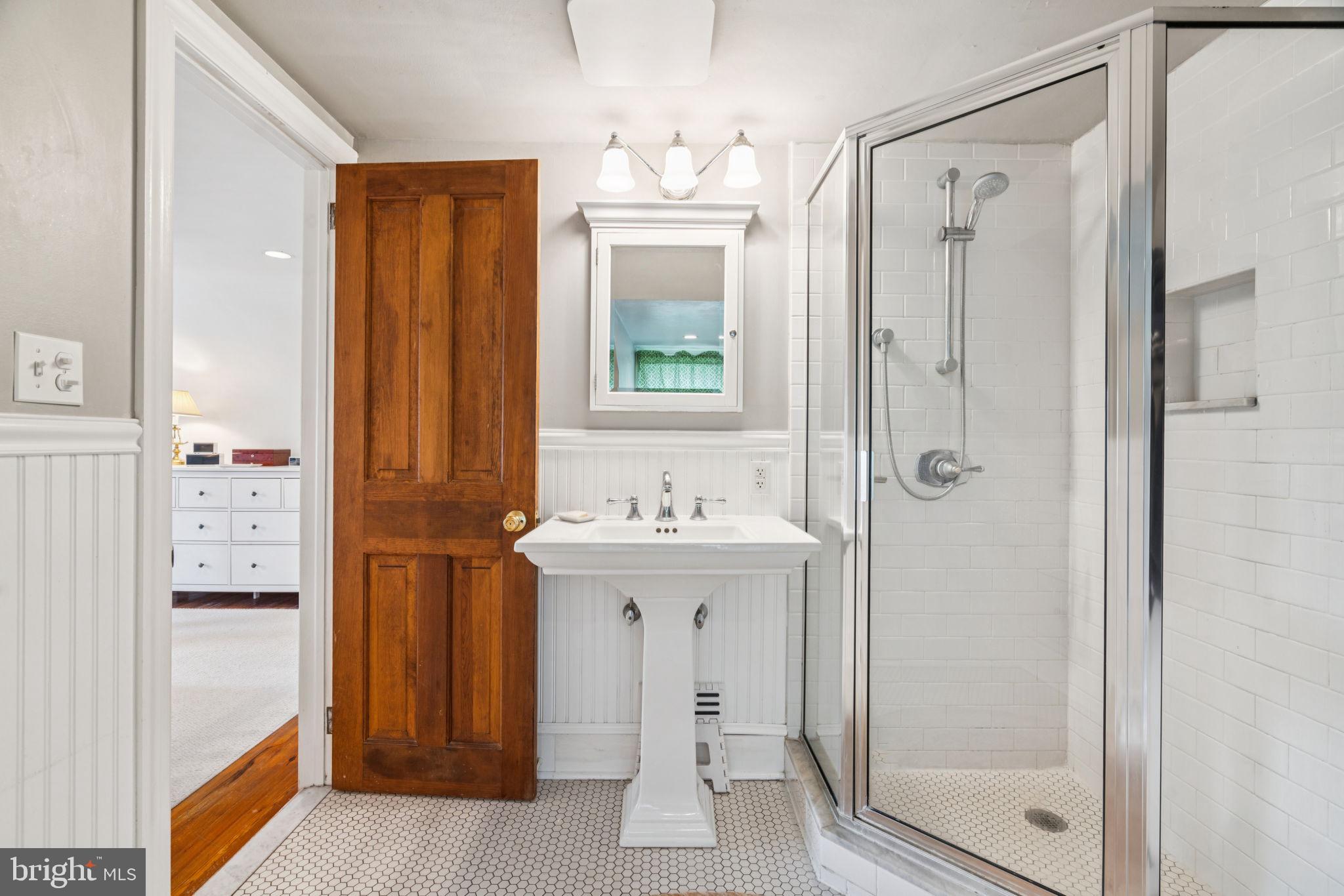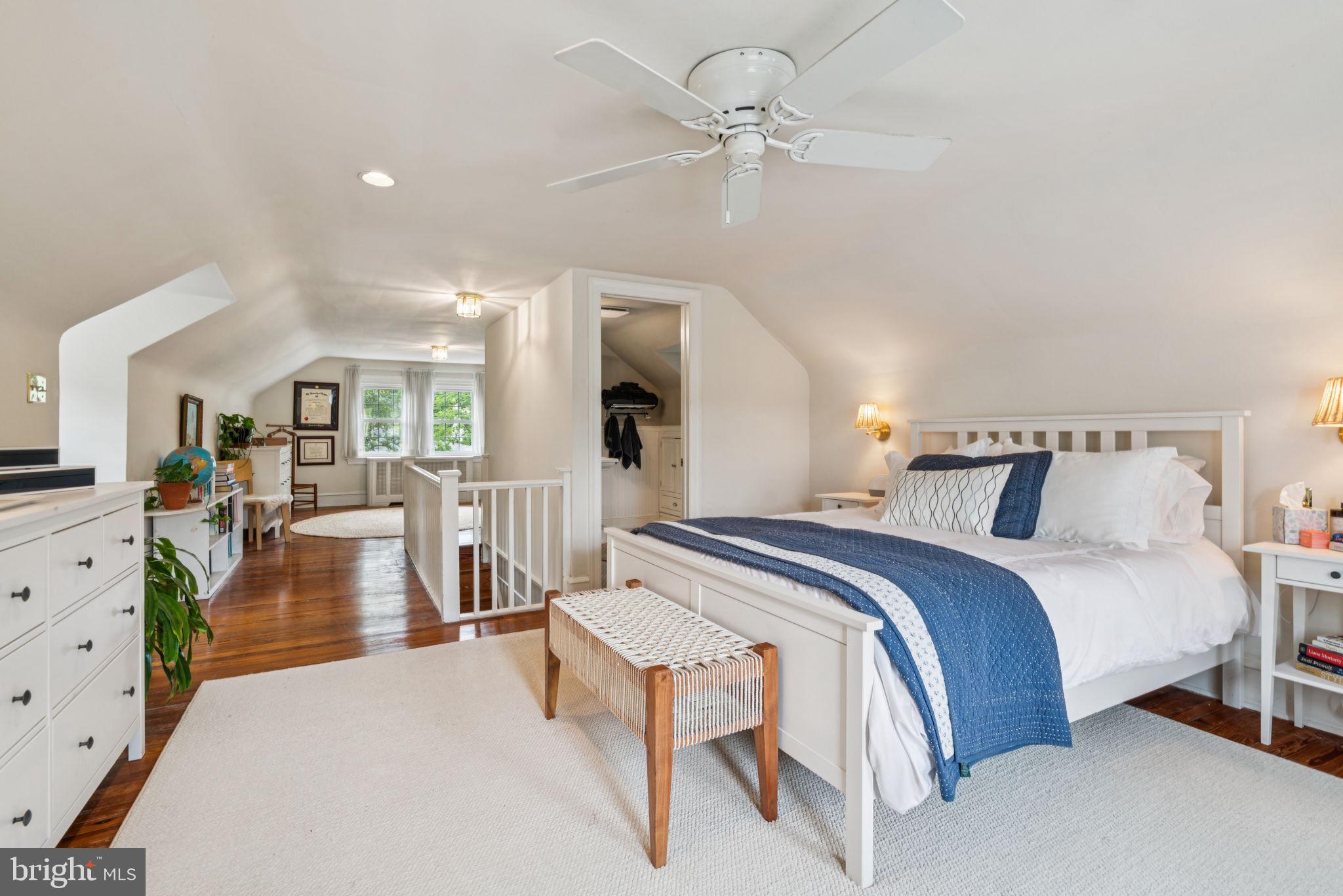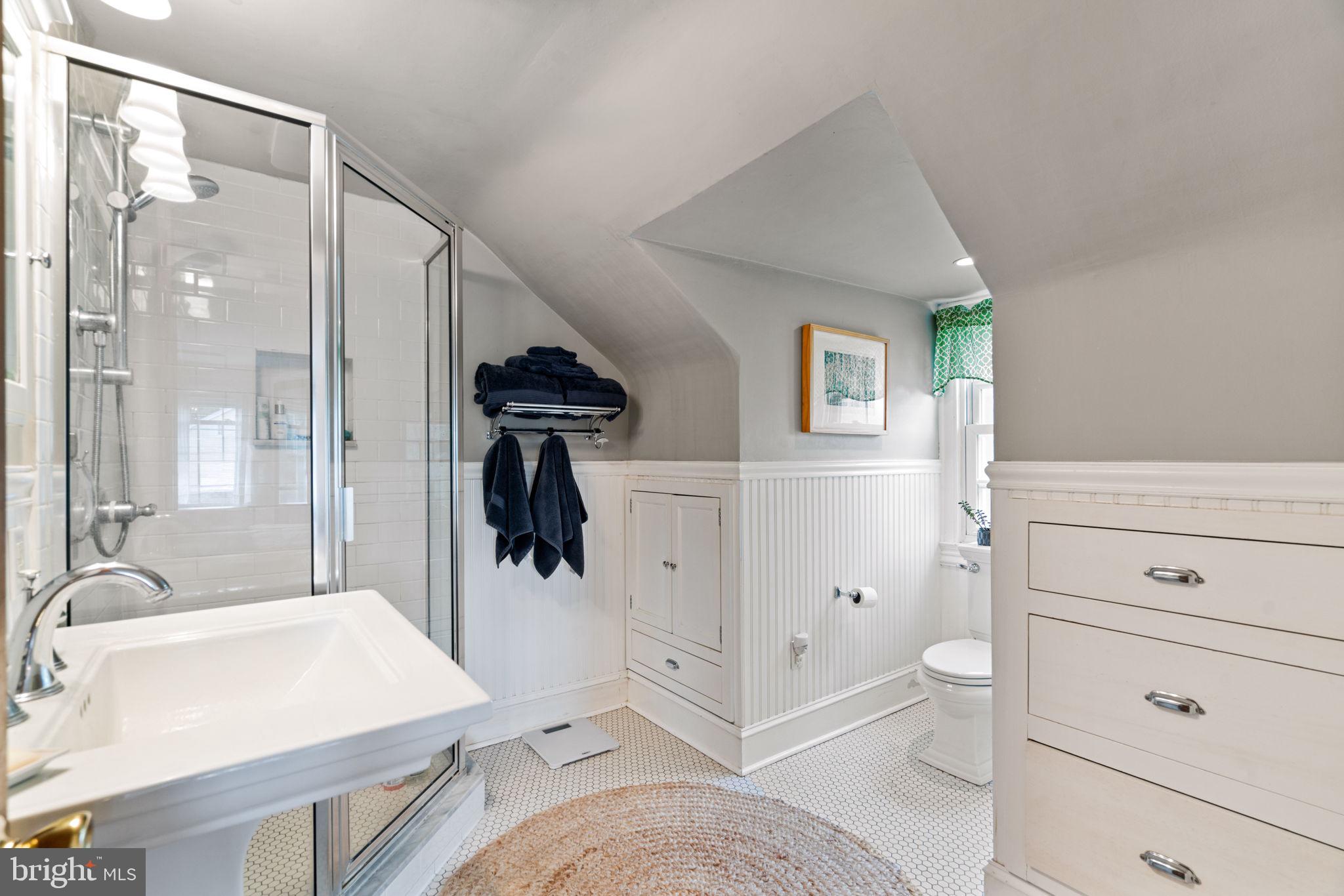 Gorgeous Bungalow in highly sought after Erdenheim Terrace! Amazing location!! This house is situated on a quiet block that is two blocks from the walking trails, playing fields, tennis courts and fishing pond at Cisco Park. The house is just a couple minutes from the Morris Arboretum, the trails in Fairmount Park, the shopping and restaurants on Bethlehem Pike in Erdenheim/Flourtown and Chestnut Hill. The 1st floor has a warm and inviting sunroom with French doors, a spacious living room with a wood burning fireplace, a separate dining room and a kitchen with stainless steel appliances, plenty of cabinetry, peninsula with seating and a pantry. This floor is complete with two bedrooms and a full bathroom. The entire 2nd floor feels like a private retreat offering a true suite with an extra sitting area, multiple closets and a gorgeous bathroom with a glass enclosed shower, pedestal sink and beadboard. The full length basement has: a media room/home gym/home office, a laundry room with a washer and dryer, cabinets and butcher block countertops and a large storage area. The yard has been professionally landscaped and there is a large deck that is perfect for outdoor entertaining. There's more: lots of natural sunlight, gorgeous pine floors throughout, 1-car garage, driveway with brick paver inlay, original solid doors, etc.