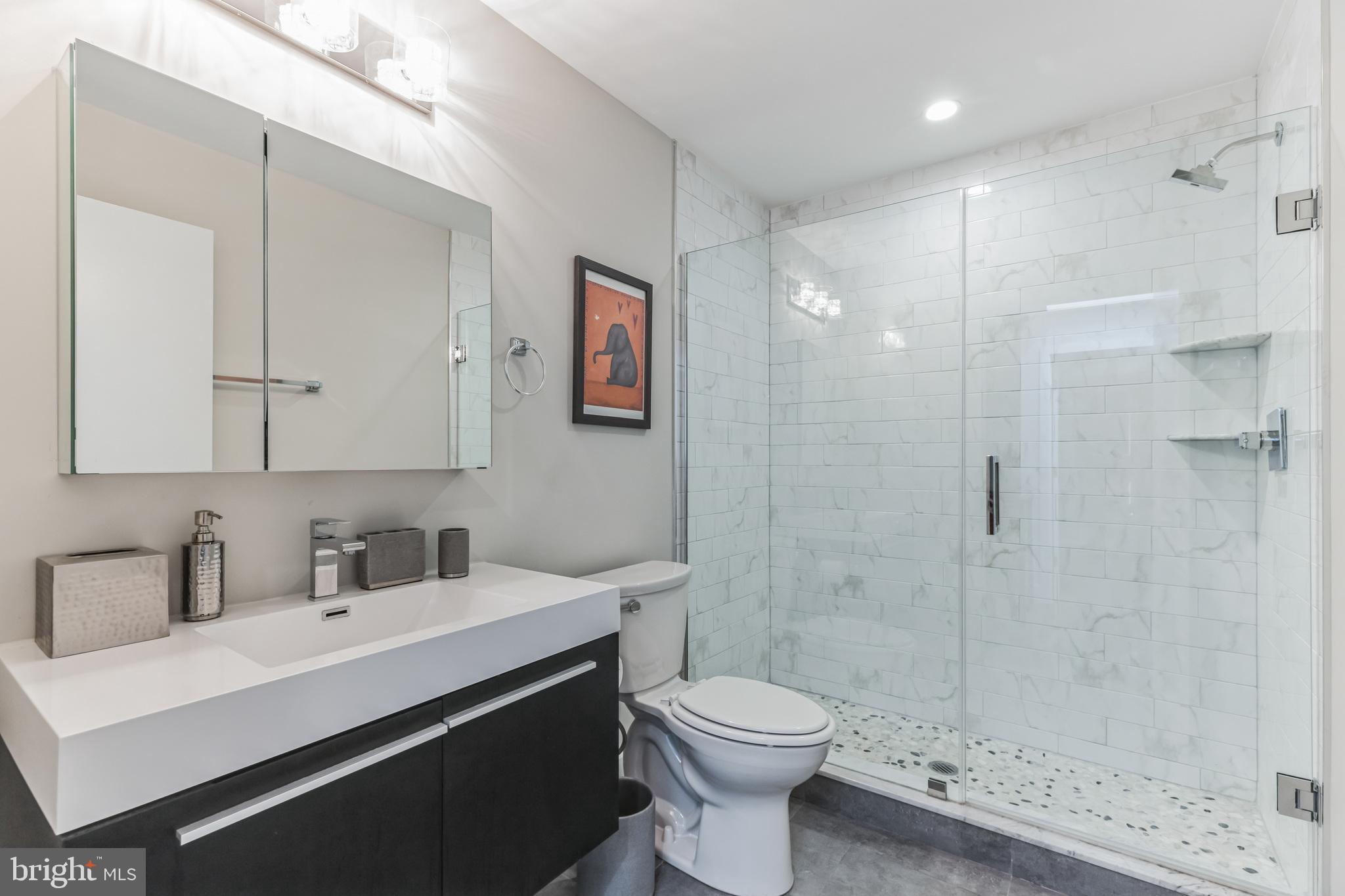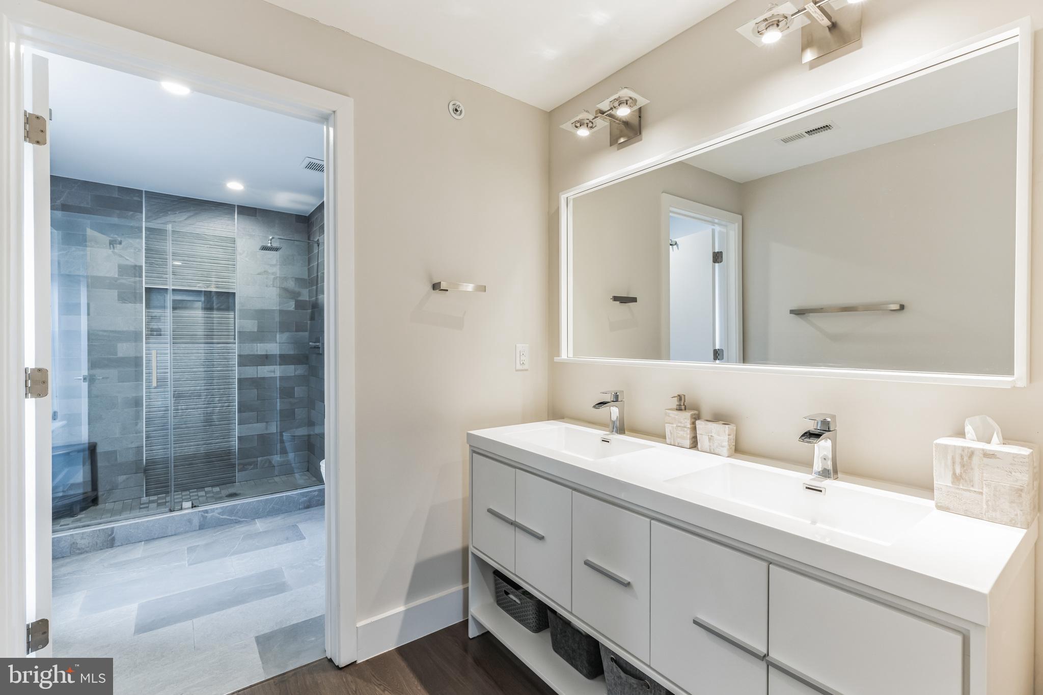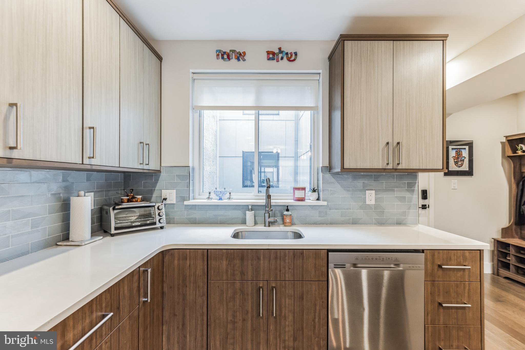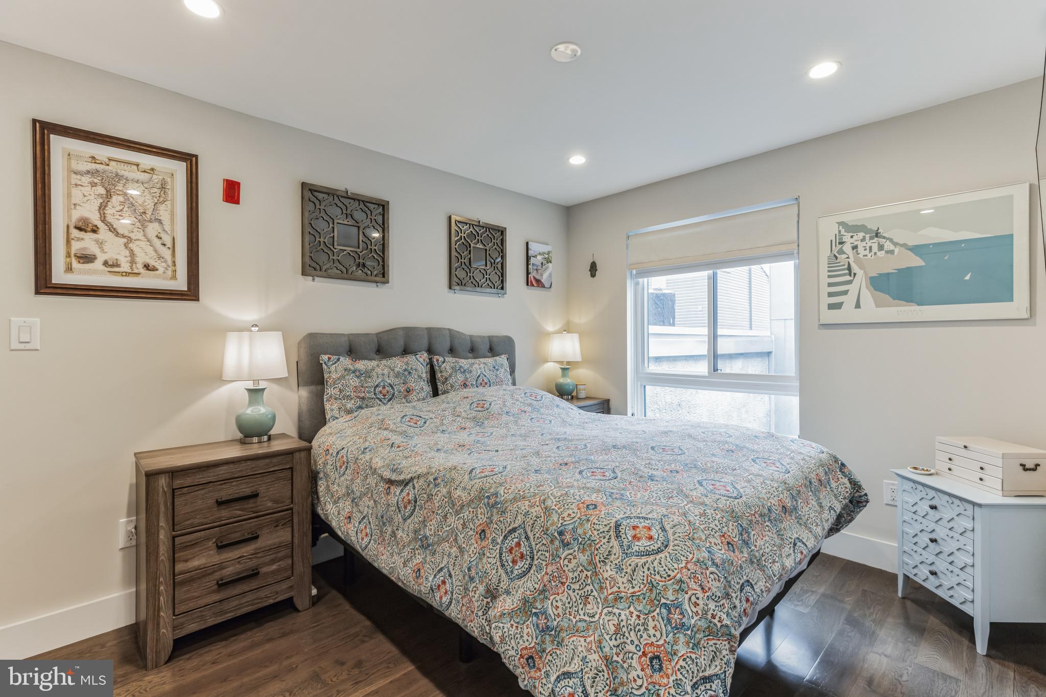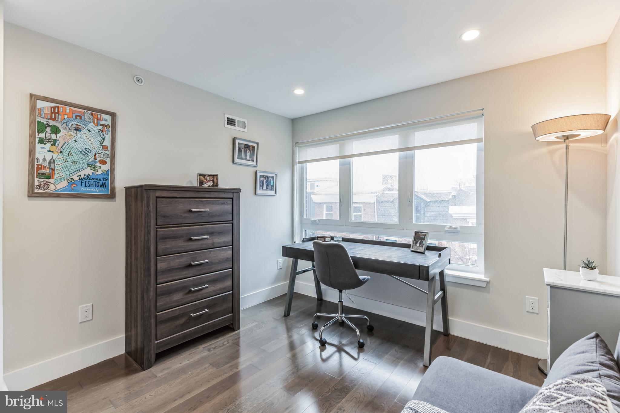 Introducing a rare bi-level condo in the heart of Fishtown. This 2 bedroom, 2.5 bathroom unit is like-new with five years left on the tax abatement! The entire home features custom Hunter Douglas window treatments and excellent condition hardwood floors throughout. The large kitchen has an incredible amount of storage space, including convenient drawer bases, a corner lazy susan cabinet, and a 96" island. Features like the semi-custom cabinetry, white quartz countertops, and icy blue tile backsplash make for a stylish place to cook, hang, and entertain. Everything, including the Samsung stainless steel appliances, are in like-new condition. As you continue past the kitchen, you'll find a spacious living room that floods with great natural light through large southeast facing windows. Also on the first level is a convenient half-bathroom and a laundry closet with front loading Samsung washer and dryer. Rounding out the first level is a surprising amount of storage space with custom closet built-ins underneath the stairs. Upstairs you will find that the natural light continues with an unexpected hallway skylight. Tucked away is a sophisticated primary suite featuring a 60" double vanity, a large shower with frameless glass enclosure, and custom closet systems. The spacious second bedroom features another large picture window and a custom closet system. Lastly, the large hall bathroom boasts it's own spa-like shower with frameless glass enclosure. Located just steps from green space like Palmer Park, this tree lined block is quiet despite proximity to the best bars and restaurants that Fishtown has to offer. A less than five minute walk will get you to Suraya, LMNO, Kalaya, Riverwards Market, and so much more! A quick walk to the Berks El stop will have you downtown in no time. Don't miss out on this gem!