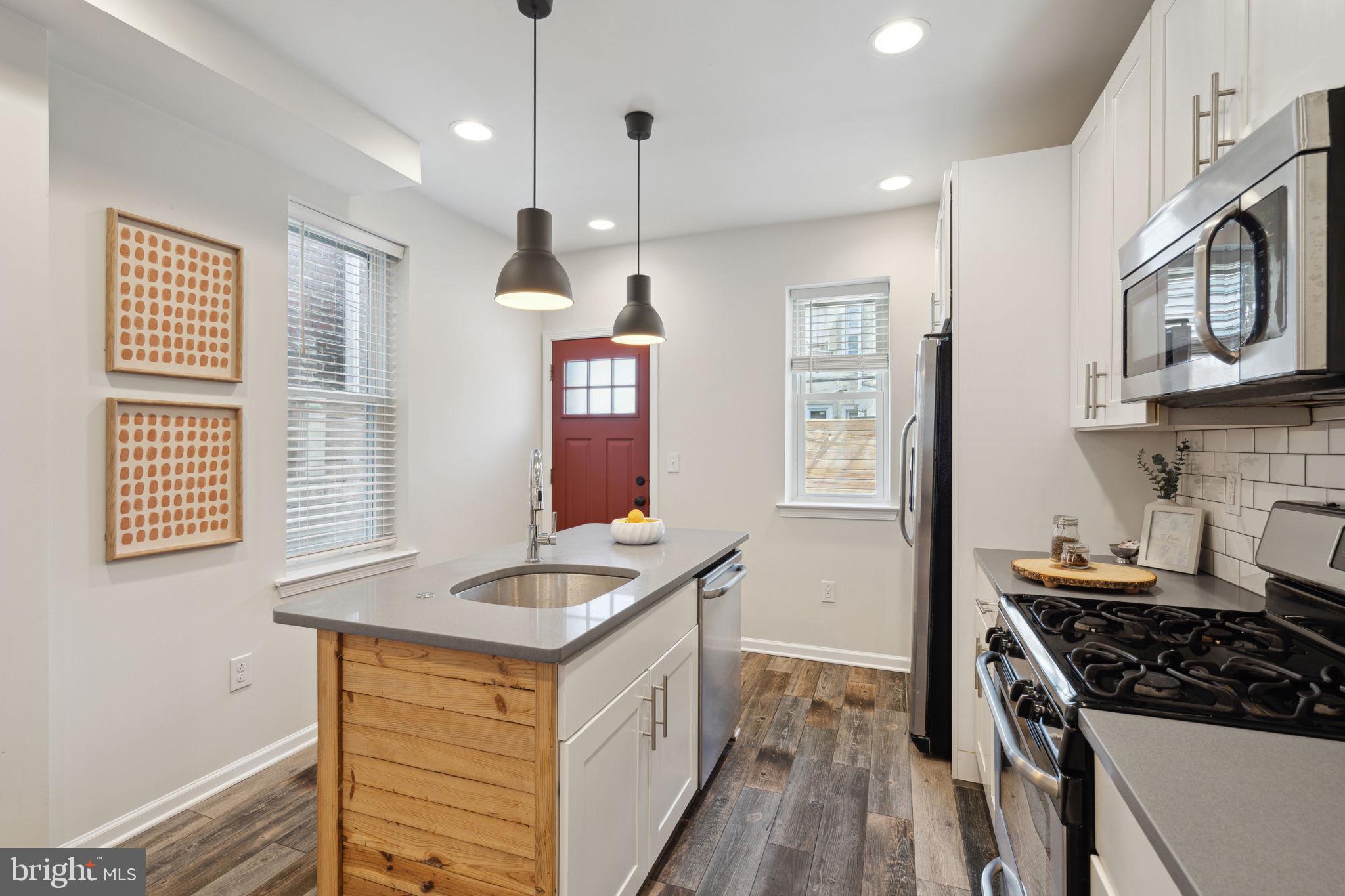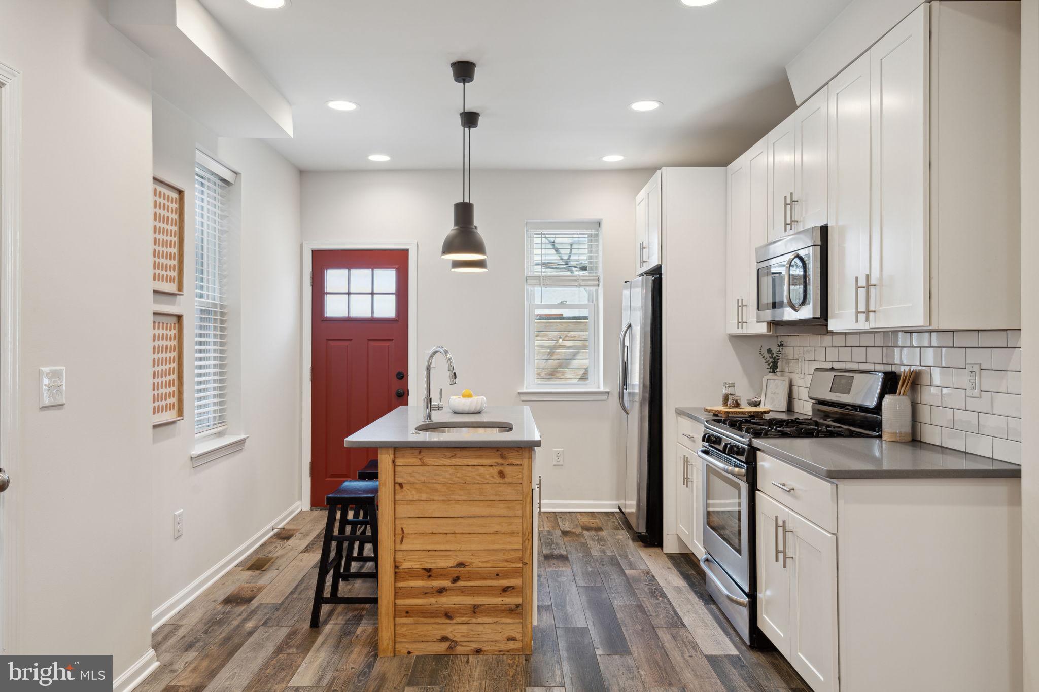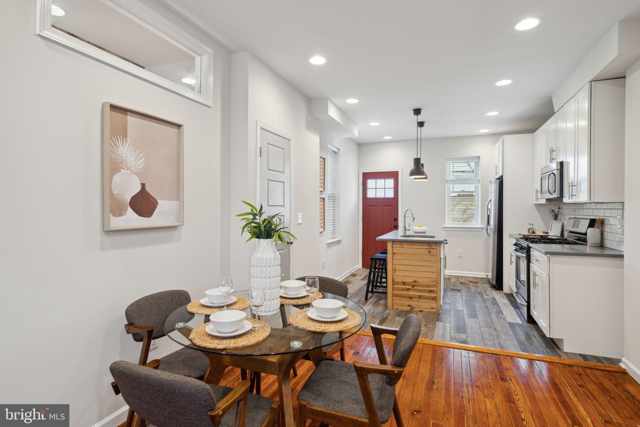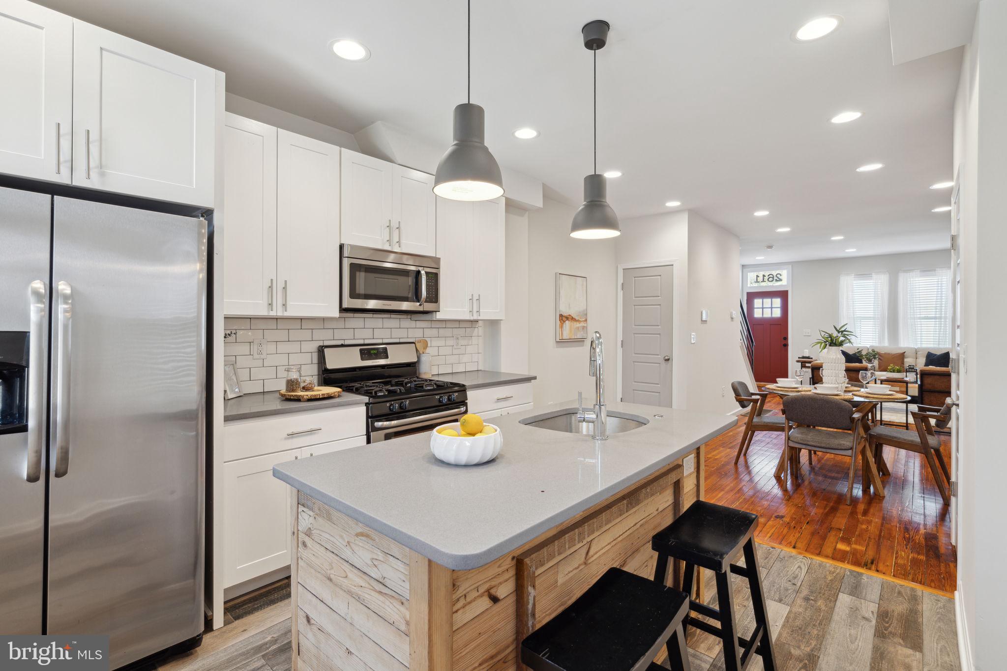 Recently renovated property in Grays Ferry with the finest attention to detail. The open 1st floor with 9 ft ceilings features a living room with exposed brick walls, a dining area, powder room and an eat-in kitchen with quartz counters, center island for seating, 42" white cabinets w/ self close drawers, stainless steel appliances and subway tile backsplash. The 2nd floor has 3 spacious bedrooms and a gorgeous bathroom with a soaking tub and oversized vanity. The large back yard is private and perfect for outdoor entertaining. There's more: refinished pine floors throughout, transom windows, interior metal railings, recessed lighting, 9 ft ceilings throughout and a full length basement which offers plenty of storage space. The home's systems are newer including: heater, central air, electrical and windows. Low taxes! Around 3-4 years left on the tax abatement. Great location! This house is just a short distance to UPenn, CHOP, Drexel, Pennovation, Wharton Square Park, Center City, Rittenhouse, 76, etc. There is a lot of new construction and development happening in the area. New homes are selling in the $700k's just a few blocks down the street.