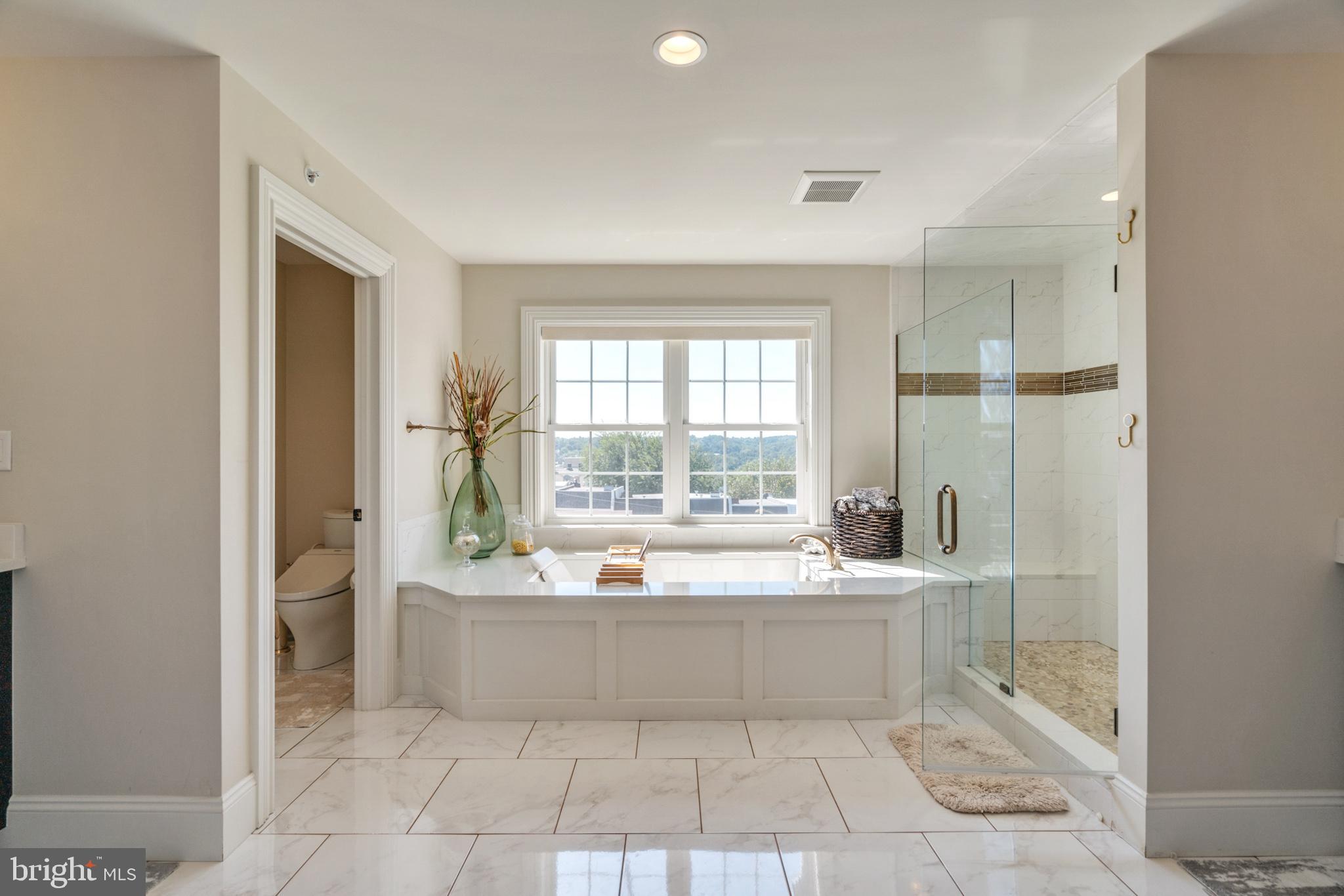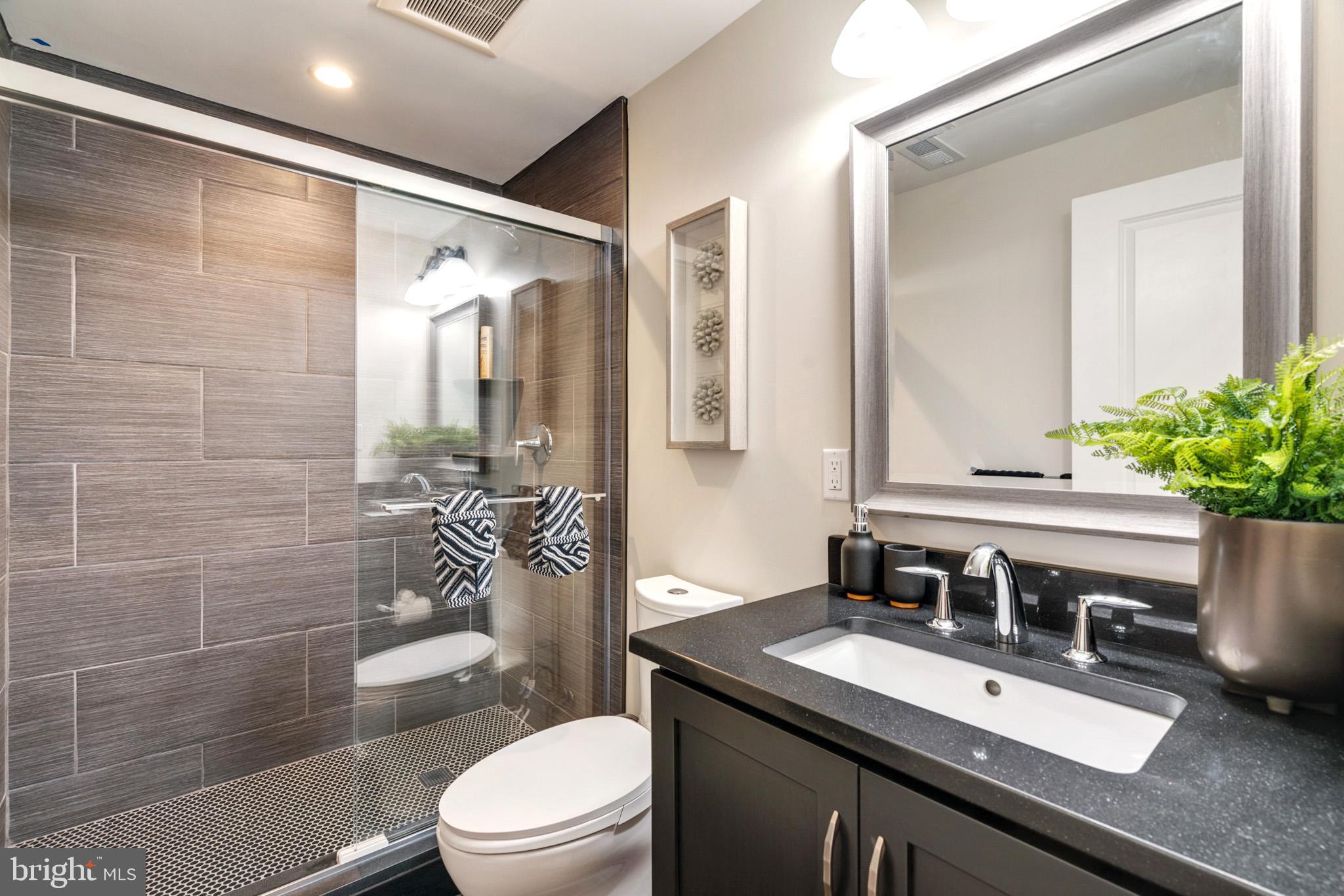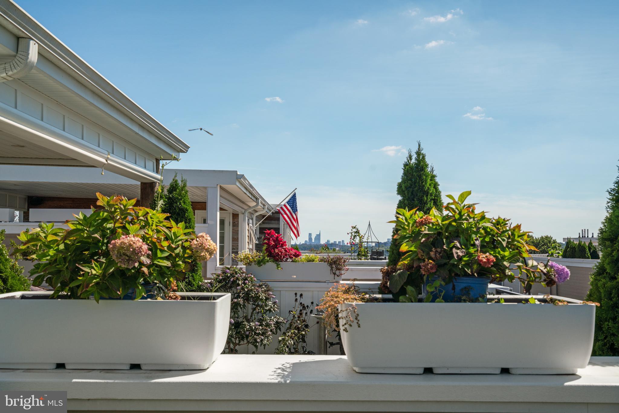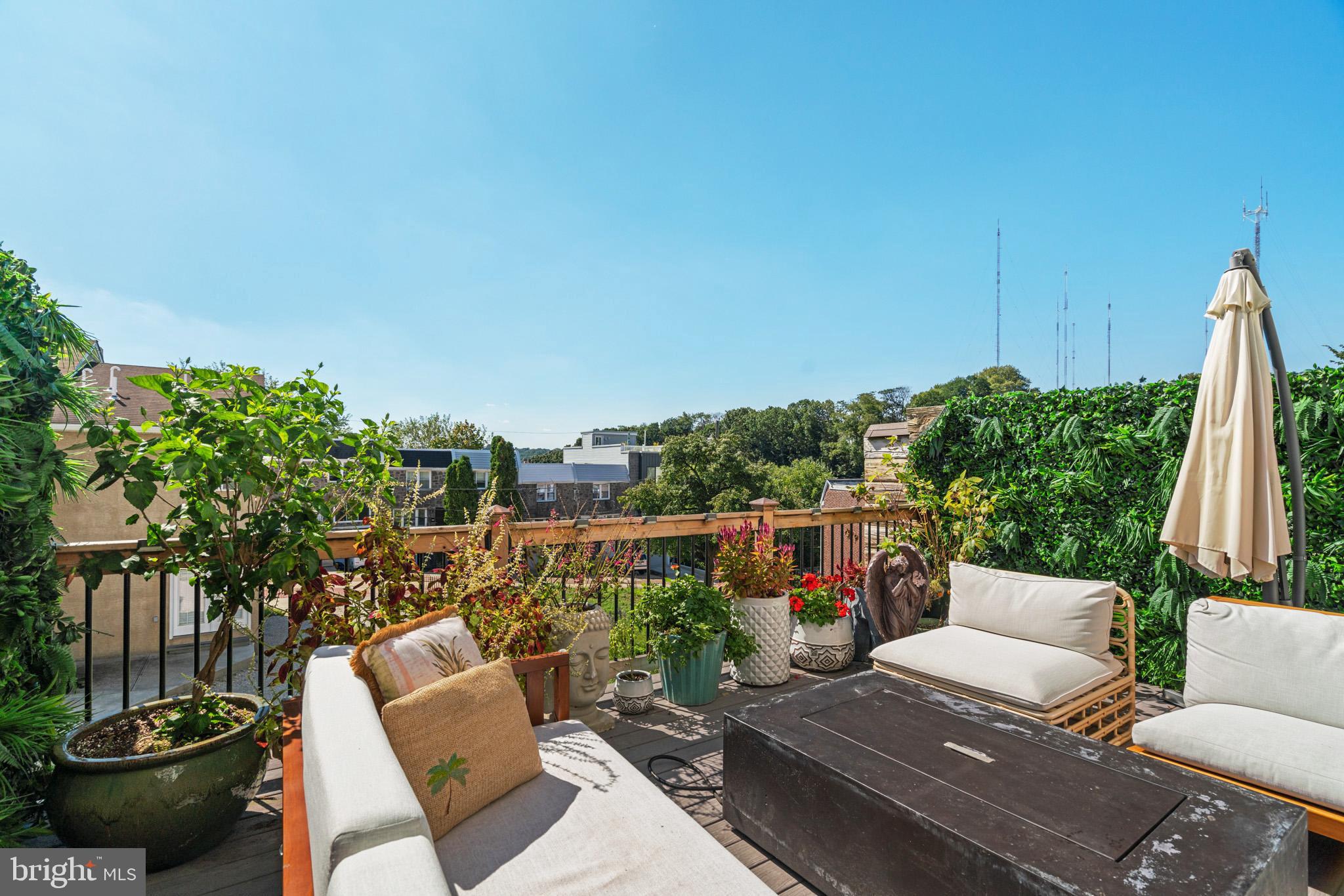 This stunning, green-designed Manayunk townhome features 4 stories of spectacular amenities, including a stunning GREEN roof that presents like a penthouse with sweeping Manayunk views. Upgraded design features include coffered ceilings, 5-zone sonos sound system, updated trim package, gourmet kitchen and woven wall paper. These all lend to the peaceful and sophisticated atmosphere in this very special home. The ground floor features a welcoming foyer that flows down the hall into the home office/4th bedroom/home gym which opens out to the zen-like courtyard. This floor is complimented by a full bathroom. The 2nd floor beams with natural sunlight and is highlighted by a living room with a gas fireplace, custom built-in and coffered ceiling, a gourmet kitchen with tray ceilings and 42" Century-Gatehouse cabinets, GE Cafe stainless steel appliances including a beverage refrigerator, a pantry and a large 3' x 9' island. This floor was designed to entertain with a separate dining room, powder room and Andersen sliding glass doors leading to the back deck which is 1 of 3 outdoor spaces. The 2nd floor features an ideally situated laundry room with a washer, dryer and base and top cabinets with granite counters which offers plenty of storage. The 2 en suites on this floor have large closets and gorgeous bathrooms with custom tile work. The top floor features the master suite. This suite with double door entry feels like a private retreat with a large bedroom, sitting area, two generous, professionally designed walk-in closets and a spa-like bathroom. The bathroom has a walk-in shower with bench, a oversized soaking tub with quartz tops, separate vanities and a water closet. The roof deck is simply stunning and a city oasis! It combines tree-top views as far as the eye can see and the city skyline! There are two gardens highlighted by rose bushes and a covered area which is perfect for outdoor entertaining. There are too many details to list but here are a few of our favorites: Geothermal home with low utilities, 1-car garage, maintenance free exterior, hardwood floors throughout, chunky wood railings, dual zone HVAC, 9'+ ceilings throughout, underground electric, and large windows. Low taxes, around 2 years remaining on the Phila Tax Abatement! Great location! Minutes to the Manayunk Towpath, 76, Main St, the Manayunk train station and Ivy Ridge train station and the Manayunk Bridge Trail and minutes to the Schuylkill River Trail, Center City and Kelly Drive. The new construction houses in this boutique development are selling for upwards to $2 million.